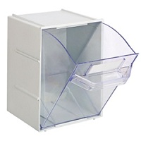 Hardware & Textlies , FMCG , Confectionaries , Pharmacy , Stationery , Roo Tilt Bins are designed with meticulous care for storage applications where products need to be stored,viewed and retrieved quickly. Roo Tilt Bins are a two-component binning system comprising of a cabinet andtilting bin which pivots at the front bottom edge of the Bin. Roo Tilt Bins are available in four sizes and are madefrom High Strength Polystyrene Resins. Roo Tilt Bin Cabinet is made from High Impact Polystyrene (HIPS) and theBin is made from High Strength Transparent Polystyrene. Polystyrene has excellent physical properties and thematerial is long lasting. The Bin is Transparent in colour and Cabinet is Light Grey